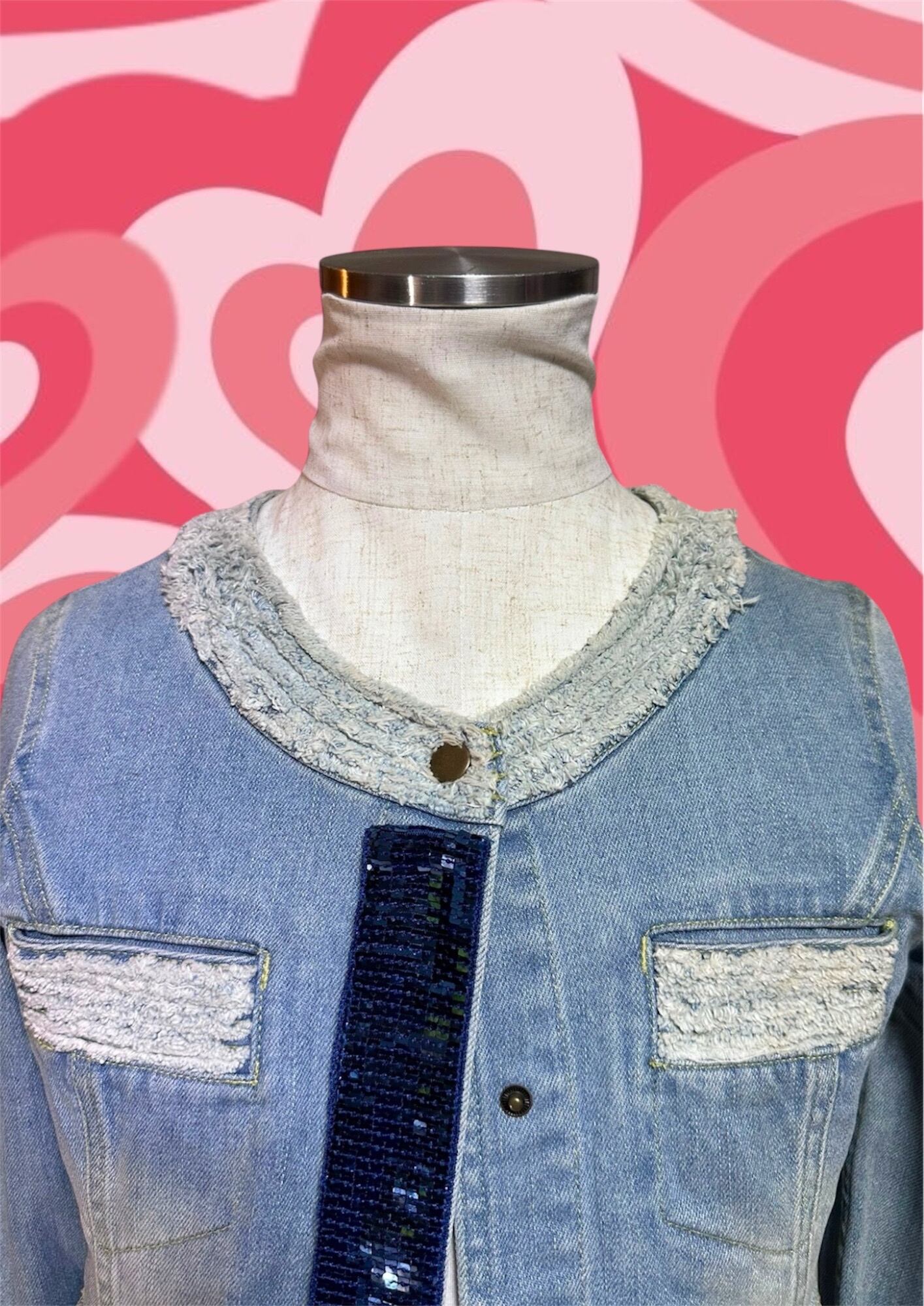 ラウンドネック装飾付きデニムジャケット